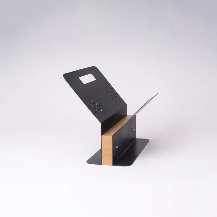 The sleek silhouette of the Yala Magazine Holder elevates reading materials into curated pieces worthy of display. Its solid wood base adds architectural grandeur, infusing warmth and character into the metallic holder. This fusion of industrial aesthetics and natural beauty creates a striking visual contrast.
